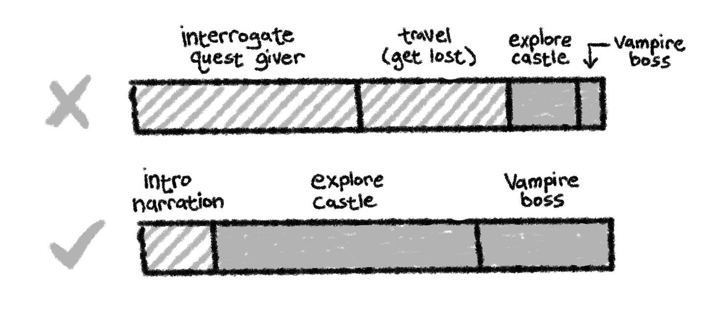 Many scenes feel necessary but quietly expand if left unchecked: quest givers, travel, shopping, random encounters, lengthy investigations.